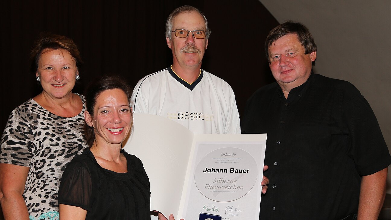 Der frühere VP-Gemeinderat Johann Bauer erhielt das Silberne Ehrenzeichen der VP NÖ von BGF Christine Besser, Stadtparteiobfrau Katharina Neuhauser-Welker und Vizebürgermeister Rudolf Ackerl für seine langjährige Tätigkeit im Gemeinderat und Unterstützung der Stadtpartei überreicht.