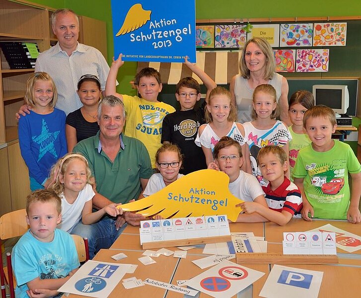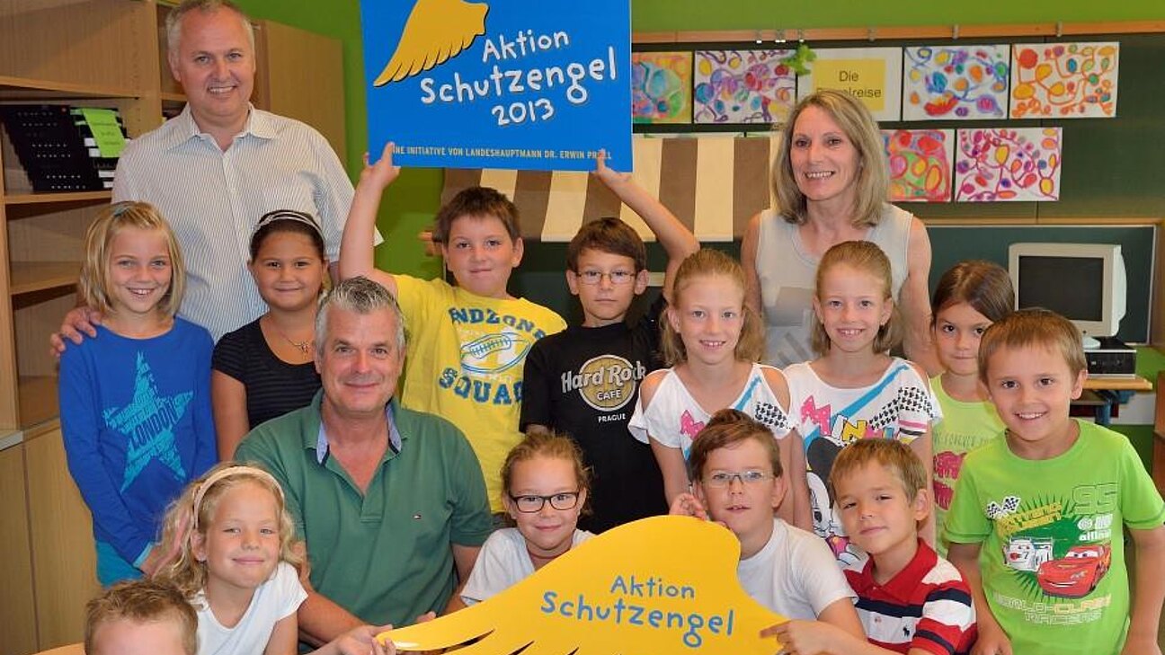 Die "Aktion Schutzengel" soll in bewährter Form zu noch mehr Sicherheit im Straßenverkehr beitragen. Der Fernsehmoderator Wolfram Pirchner, der im heurigen Jahr als Schutzengel-Pate im Einsatz ist, stattete zum Start der Aktion den Kindern der Volksschule Göttlesbrunn einen Besuch ab.