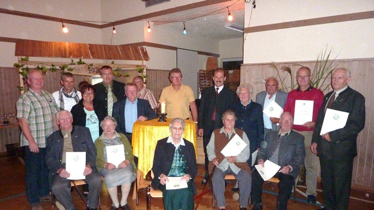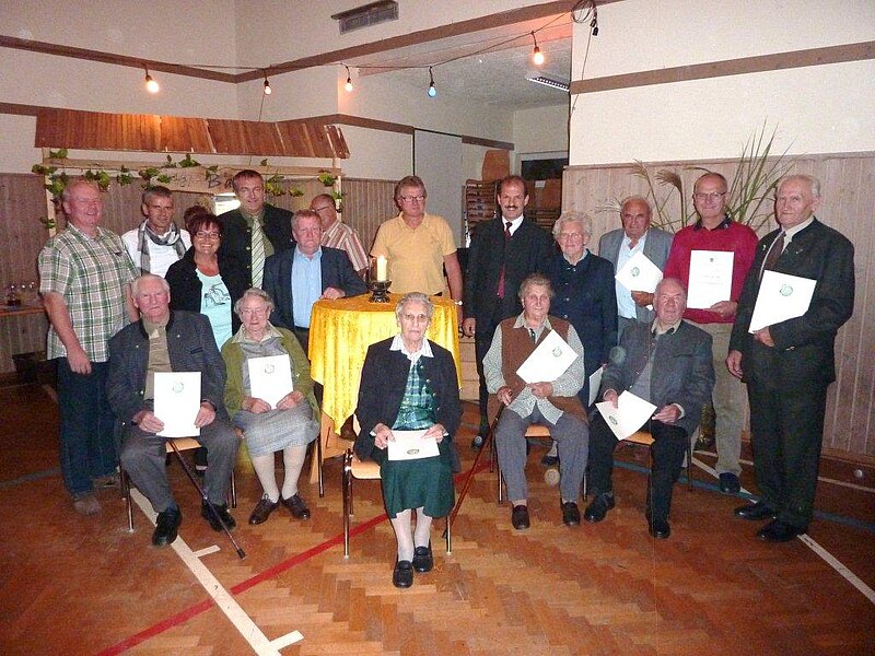 Für den NÖ Bauernbund konnten BGM LKR Otto Auer und Ortsbauernbundobmann Johann Wiedermann 13 Personen mit der goldenen Ehrennadel für über 50 Jahre Mitgliedschaft auszeichen.