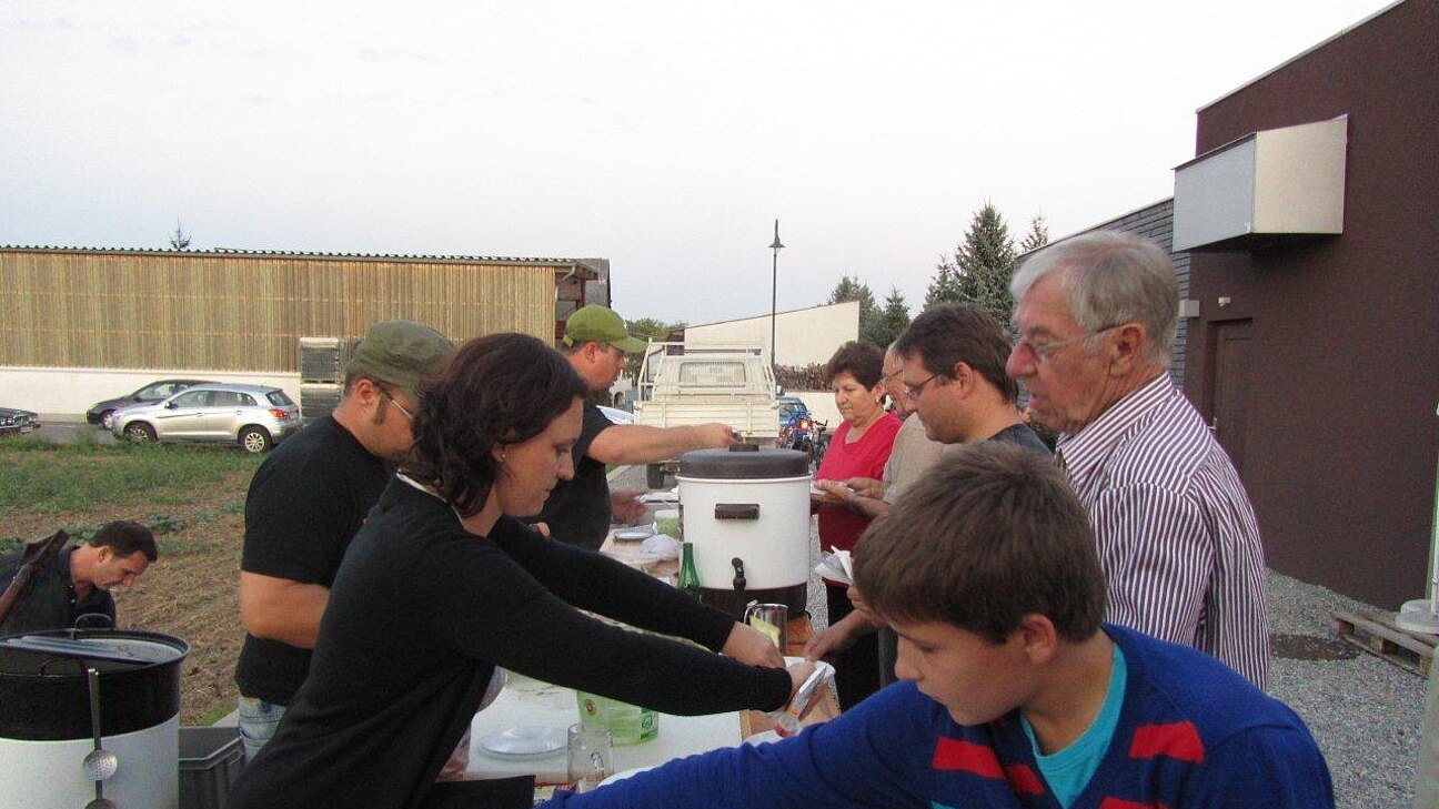 Auf der Terrasse des Heurigenlokals der Fam. Jahner genossen bei herrlichem Wetter die Besucher des Sturmstandls der ÖVP Wildungsmauer frisches Kesselfleisch und Käsekrainer. Das VP-Team hat dazu Sturm, Bier und Wein und natürlich auch jede Menge alkoholfreie Getränke ausgeschenkt und mit dem flotten, freundlichen und effizienten Service die Besucher davon überzeugt, auch beim nächsten Festl wieder dabei zu sein.
