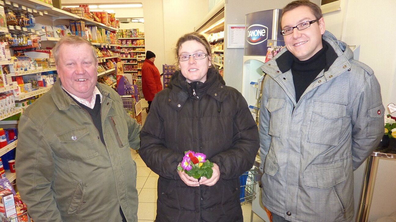 Bei der Eiseskälte war es ein Problem die Blumen unbeschadet nach Hause zu bringen, doch das Personal von Spar Schmutterer stand den Funktionären der VP Trautmannsdorf mit Zeitungspapier sowie mit Rat und Tat zur Seite.