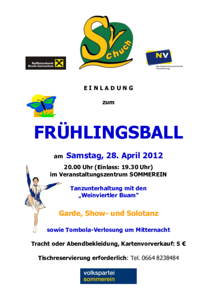Am Samstag, den 28. April 2012 findet ab 20:00 Uhr (Einlass 19:30 Uhr) im Veranstaltungszentrum Sommerein der Frühlingsball statt.
