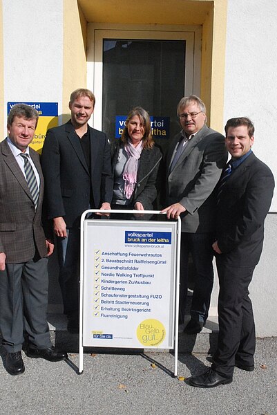 Das Bezirksgericht bleibt in Bruck. Die Feuerwehr Bruck bekam neue Fahrzeuge, die Feuerwehr Wilfleinsdorf ein neues Garagentor. Der Nordic Walking Treffpunkt beim Parkbad wurde installiert, der Schritteweg im Harrachpark angelegt und ein Gesundheitsfolder herausgegeben. Auch mit dem Raiffeisengürtel geht’s voran, er wird bald zur Gänze per Rad befahren werden können. Die umliegenden Fluren wurden gereinigt und die Schaufenster in der Kirchengasse attraktiver gestaltet. Mit dem Beitritt zur „Stadterneuerung“ und der Forcierung des Ausbaus von Photovoltaikanlagen auf öffentlichen Gebäuden hofft die VP Bruck, Fördermittel lukrieren und noch mehr positive Akzente für Bruck und seine Bevölkerung setzen zu können. "Wir sind aktiv, wir handeln, wir arbeiten, wir setzen uns ein: blau gelb gut – wo wir sind geht was weiter.", so StPO Judith Kögl.
