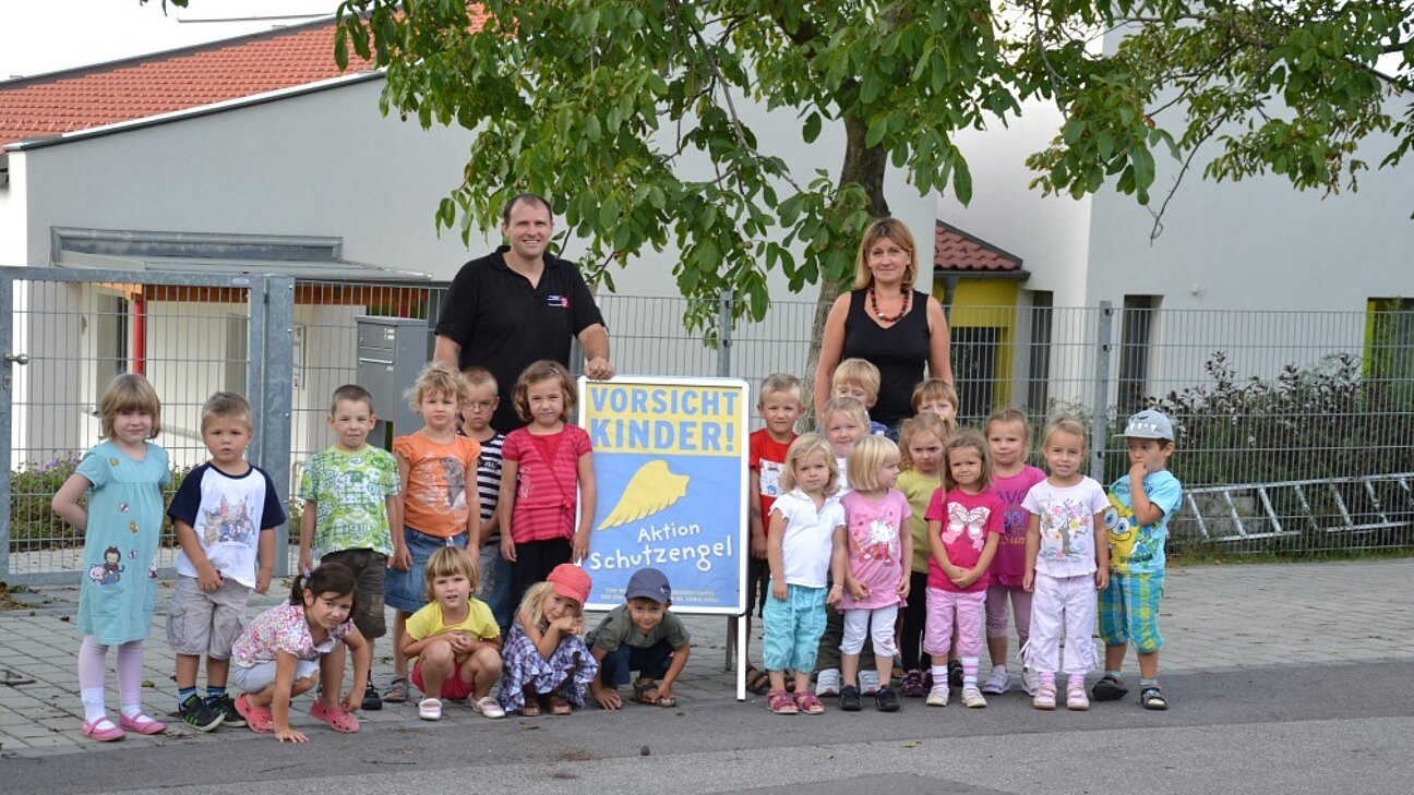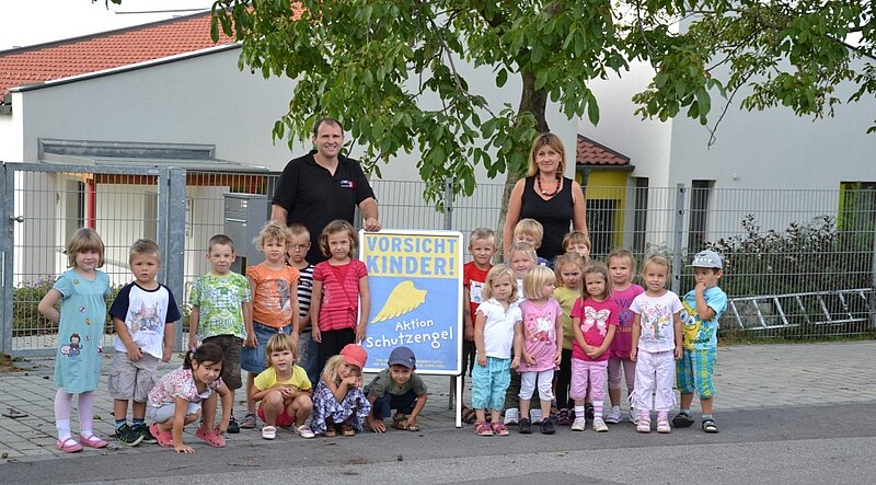 Es wurde im Jahr 2010 eine 30 km/h Beschränkung errichtet, um die Kindergartenkinder zu schützen. Auch heuer wurden wieder zum Kindergartenbeginn die Schutzengelplakate aufgestellt, die zur besonderen Aufmerksamkeit im Straßenverkehr hinweisen sollen.