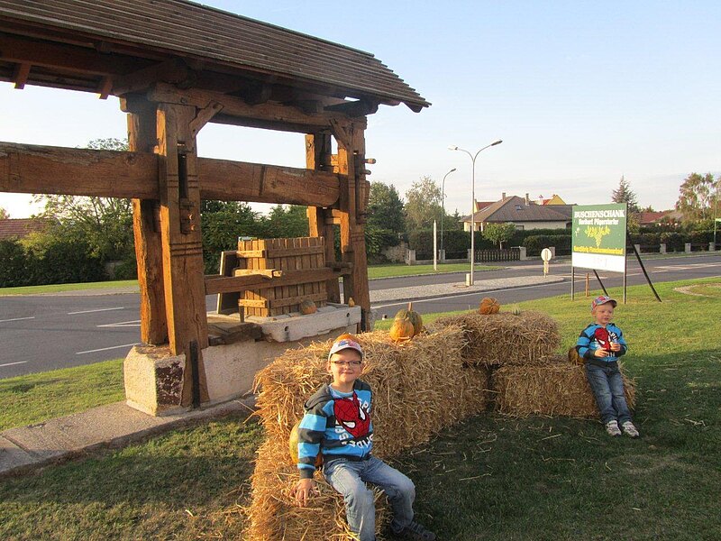Auch JVP-Bezirksobmann STR Alexander Petznek aus Bruck schaute vorbei, was GPO Christine Besser sehr freute. Der schöne Vorgarten am Areal des Heurigen Pilgerstorfer mit der wunderbaren Weinpresse eignete sich hervorragend für die Veranstaltung und selbst die Kinder hatten bei den aufgestellten Strohballen sichtlich ihren Spaß.