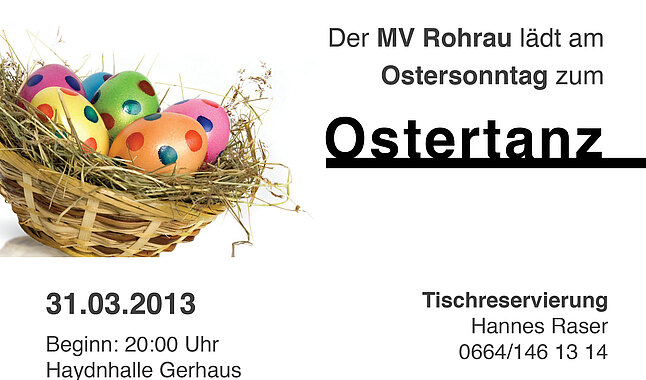 Der Musikverein Rohrau lädt am Ostersonntag, 31.03.2013 ab 20.00 Uhr in die Haydnhalle Gerhaus zum…