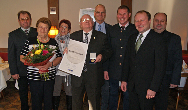 Goldenes Ehrenzeichen für Ernst Schnitzer (Sarasdorf) anläßlich seines 80. Geburtstages