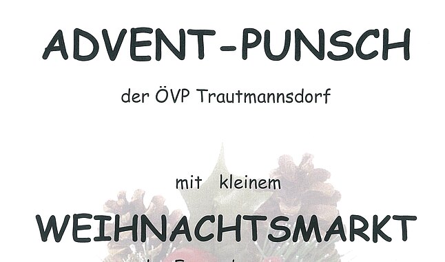 Die ÖVP Trautmannsdorf lädt am Freitag, den 07. Dezember 2012 ab 17 Uhr zum Adventpunsch auf den…