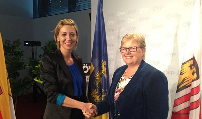 Die Landes- und Bundesleiterin der ÖVP Frauen gratuliert der frisch gebackenen Bezirksleiterin…