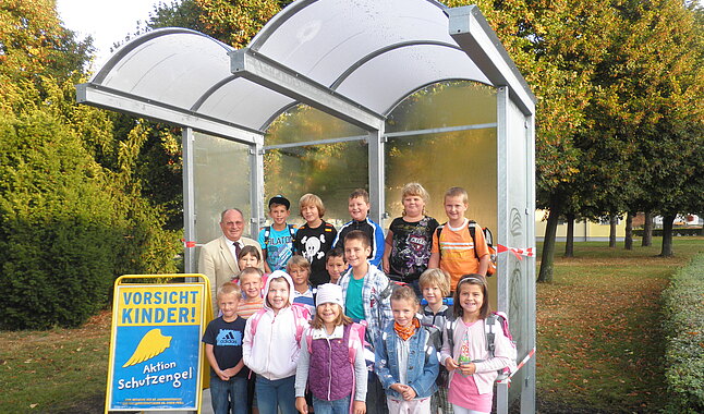 Damit die Kinder auch bei Schlechtwetter – Regen, Wind u. Schnee – geschützt auf den Schüler-Bus…