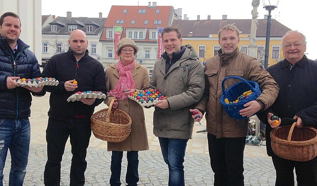 Bunte Ostereier gab es heute von der VP-Stadtpartei Bruck am Hauptplatz