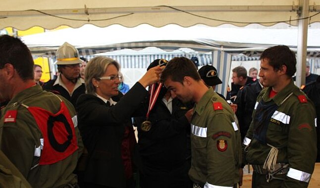 Mannersdorf: LR Dr. Bohuslav ehrt die Sieger des Bezirksfeuerwehrleistungsbewerbes